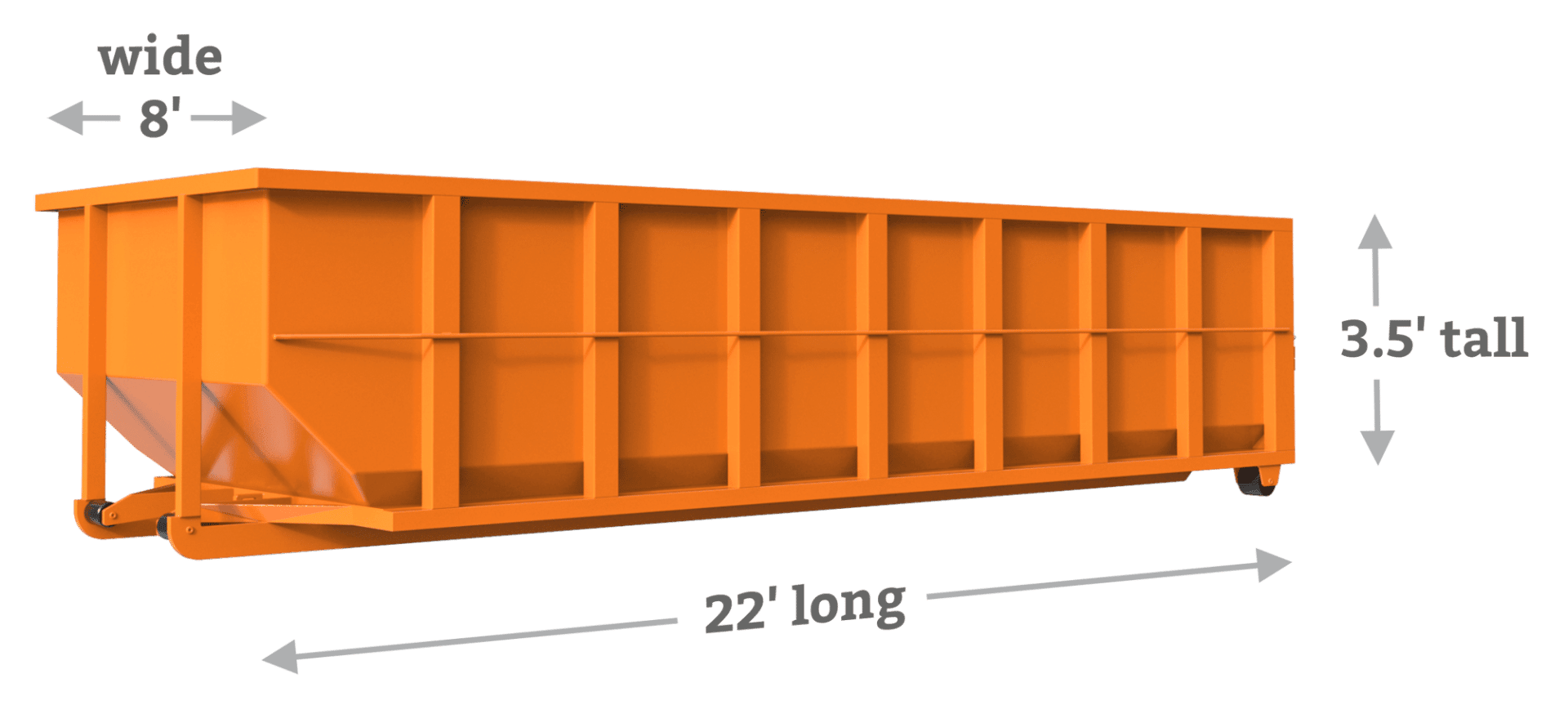 A 20 yard dumpster typically measure 22 feet long, 8 feet wide, and 4.5 feet high. This makes them a good size for most residential driveways and other small spaces.