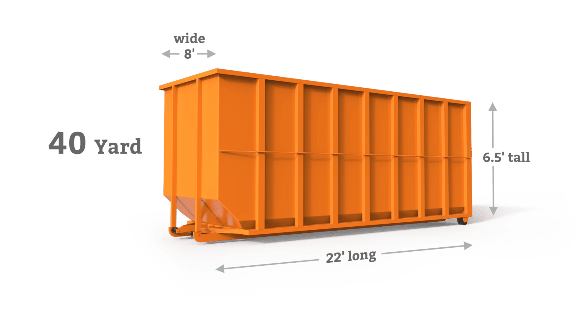 40-yard roll-off dumpsters typically measure 22 feet long, 8 feet wide, and 8 feet high. This makes them a large piece of equipment, so it is important to ensure that there is enough space on your property to accommodate the dumpster.