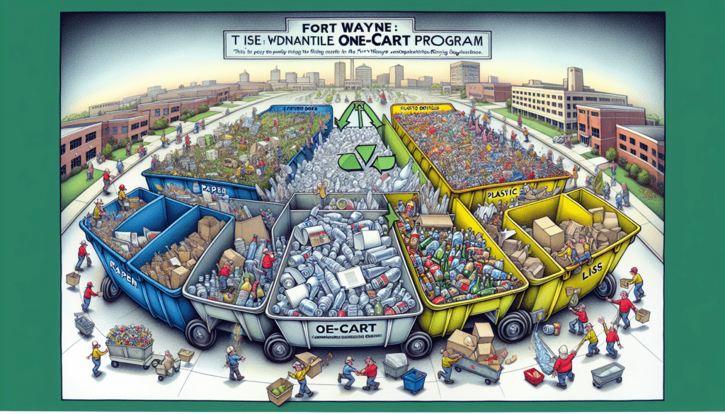 - The One-Cart system facilitates recycling in Fort Wayne, allowing the co-mingling of paper, aluminum, plastic bottles, and glass. Specialized programs for electronics and yard waste also encourage sustainable disposal and recycling practices.